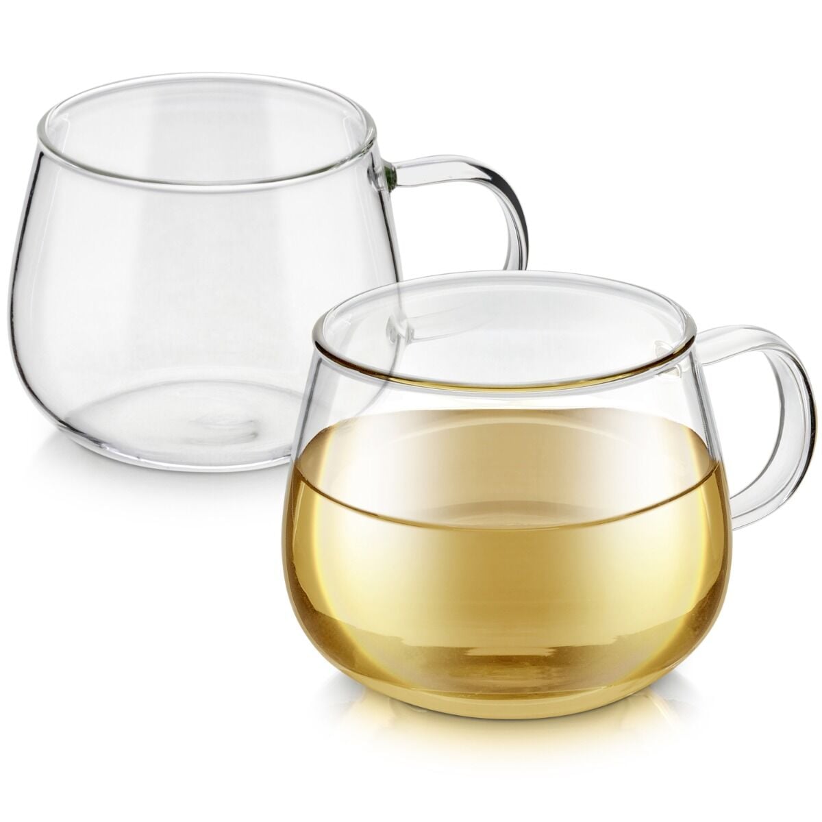 The Blossoms round glass cup pair has a sleek and modern design that adds a touch of sophistication to any setting. These glass cups come in a set of two and are fantastic for tea and excellent for hot chocolate, tea cocktails, and even soup or dessert. You’ll love using these circle glass cups in your kitchen, office, or the cafe.