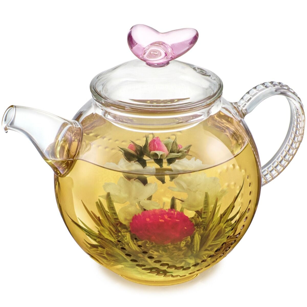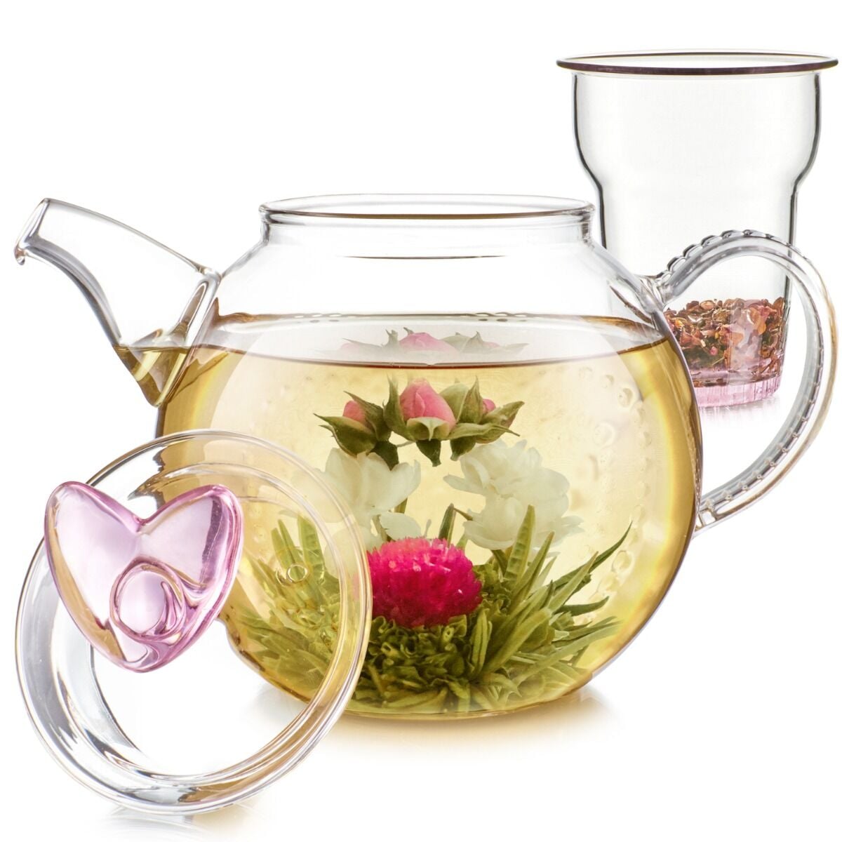 - Removable Pink Infuser for flowering teas and loose-leaf teas
