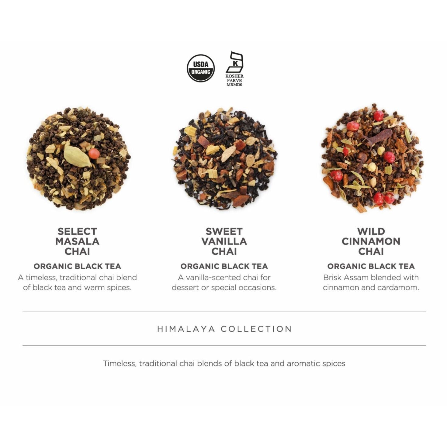 - Organic Black Tea in three delicious flavors harvested from India